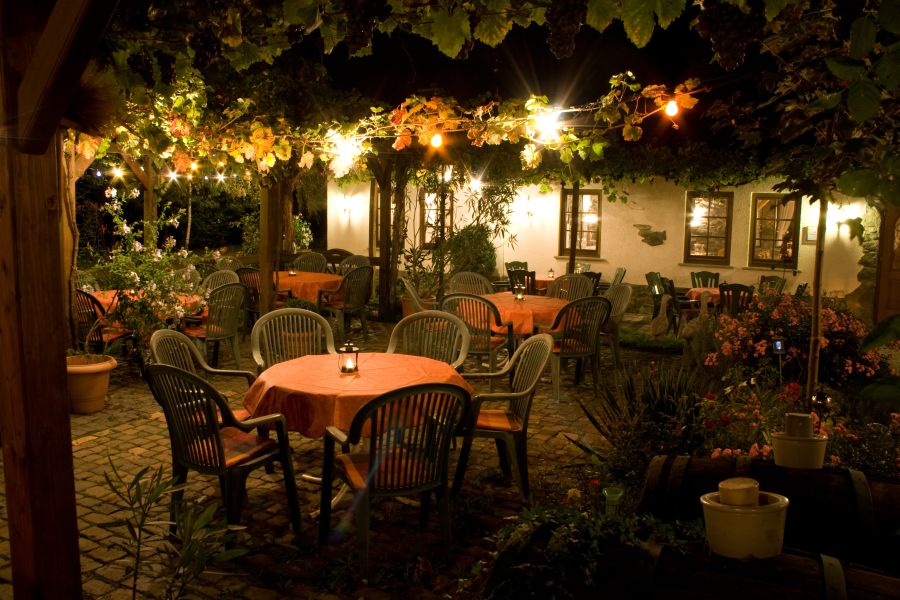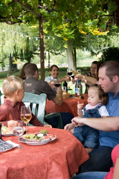 Nehmen Sie Platz in unserer urig gemütlichen Weinstube. Lassen Sie sich verwöhnen mit herzhaften oder leichten Gerichten und saisonalen Spezialitäten. Dazu einen unserer leckeren Weine – herrlich! So können Sie in unserem mit Reben bewachsenen Weingarten, umgeben von hohen Bäumen und Wiesen so richtig vom Alltag relaxen. Das weitläufige Gelände lässt auch Kinderherzen höher schlagen.